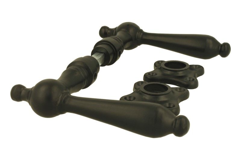 Deurklink gietijzer zwart klassiek model klaver rozet