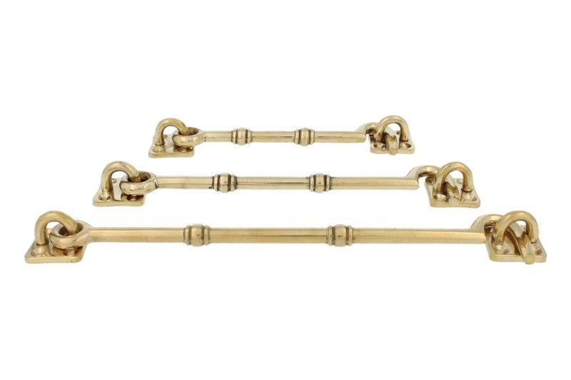 Crochet de contrevent laiton poli modèle antique 200 mm