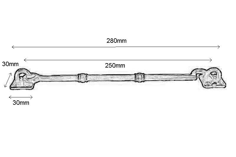 Crochet de contrevent nickel brossé modèle antique 250 mm