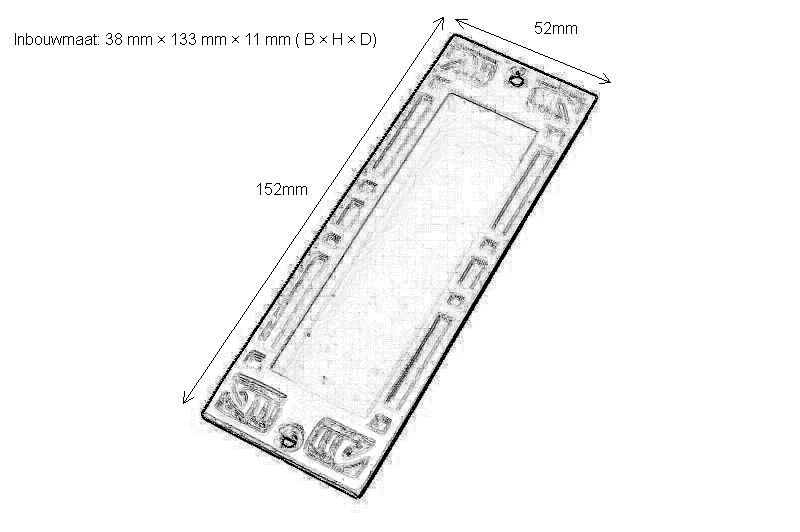 Peinture électrostatique. Dimensions extérieures 152x52 mm. Entaille 38x133x11 mm