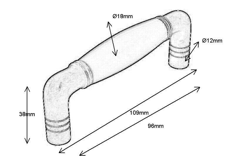 Poignée de cuisine laiton poli. Entraxe 96 mm