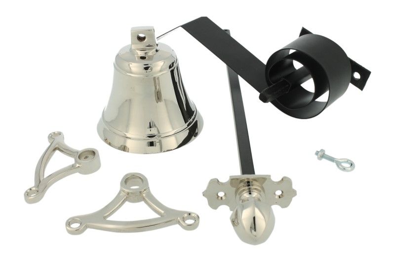 Ronde 8-kant knop, bel, veer, 2x tuimelaar, trekstang met rozet