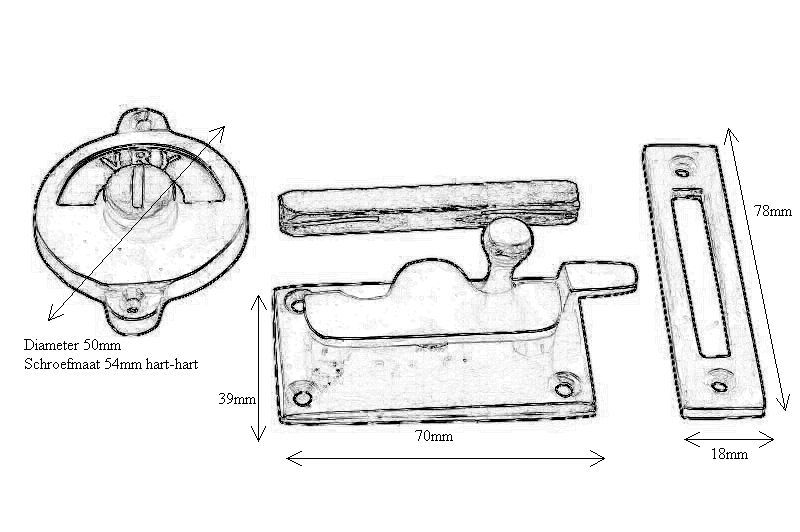 Al het beslag wordt geleverd met bijpassende ouderwetse schroeven met gleuf (lenskop) in de juiste kleur